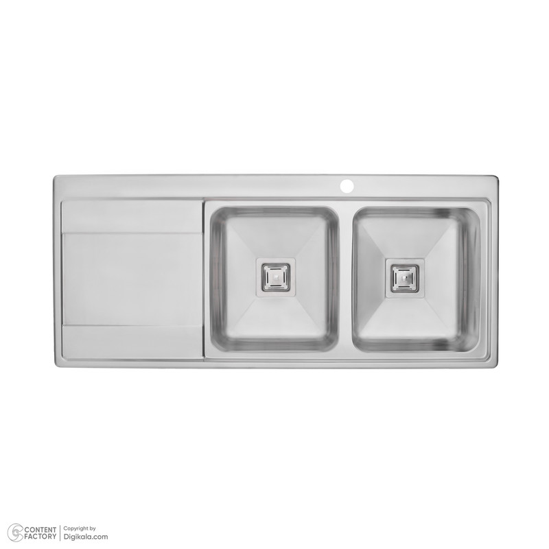 ابعاد: 120x52x22 سانتیمتر / ظرفیت لگنها: هر لگن 24 لیتر / نوع سیفون: دو کفشور، یک سرریز / محل نصب شیر آب: روی سینی /