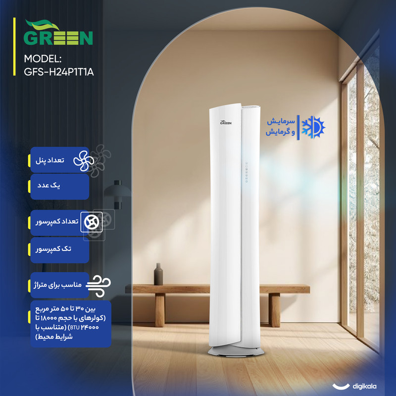 نمایشگر دیجیتال روی ریموت , طراحی ارگونومیک و سبک , قابلیت تنظیم حالت توربو از ریموت , کنترل کامل تنظیمات دما و فن