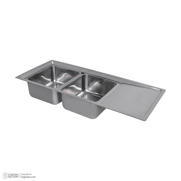 ضخامت ورق سینی : 0/7 میلیمتر / ضخامت ورق لگن : 0.8 میلیمتر / ابعاد: 120x52x24 ظرفیت لگن: هر لگن 22 لیتر / نوع سیفون: دو کف شور، یک سرریز / محل نصب شیر آب: روی سینی